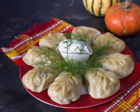 1 йомортҡа, ярты сынаяҡ ҡайнап һыуытылған һыу, тоҙ, он һалып, ҡамыр баҫабыҙ. Өйрәк йәки ҡаҙ итен, ашҡабаҡты , һуғанды ваҡ ҡына итеп турайбыҙ ҙа, борос, тоҙ һалып бутайбыҙ. Ҡамырҙы нәҙегерәк итеп йәйеп, эслекте һалып, мантыйҙар эшләйбеҙ һәм 45 -50 минутҡа бешерергә ҡуябыҙ.