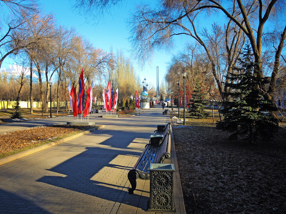 В июле 2020 года был подписан указ о присвоении 20 городам России почётного звания «Город трудовой доблести». В это число вошла и Самара (Куйбышев). После этого был запущен процесс создания памятной стелы. Процесс оказался не быстрым. Открытие памятника в Самаре состоялось 10 декабря 2021 года. Мемориал представляет собой стелу высотой 26 метров. На ней изображены герб города, текст указа, а также самолёты Ил-2. Производство именно этих самолётов было налажено в Куйбышеве на базе большого количества эвакуированных сюда заводов. По бокам от стелы установлены пилоны с изображениями знаковых событий военных лет в Куйбышеве и с описанием трудового подвига жителей города. Дублировать информацию не буду, её можно посмотреть на фотографиях. Памятник находится на Аллее Трудовой Славы (бульвар проспекта Юных Пионеров) около входа в парк имени 50-летия Октября. Этот участок улицы от Молодёжного парка до парка Металлургов представляет собой большой мемориальный комплекс, посвящённый заводам, пере
