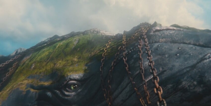У кита весь нос цепями обмотан, потому что он наказан. Эта селедка гигантская 100 кораблей проглотила. Так что надо как-то эти корабли выпустить.
