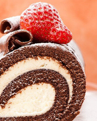 ИНГРЕДИЕНТЫ ПОРЦИИ 8 Темный шоколад 30 г Сахар 150 г Куриное яйцо 4 штуки Вода 2 столовые ложки Мука с разрыхлителем 40 г Пшеничная мука 1 столовая ложка Фундук 40 г Сыр маскарпоне 250 г Сахарная пудра 5 чайных ложек Сливки 125 мл Ликер «Франжелико» 2 столовые ложки Ваниль 1 штука 1.Разогреть духовку до 180 градусов. Прямоугольную форму для выпечки смазать топленым маслом и застелить бумагой для выпечки таким образом, чтобы ее края свисали на 7 см по коротким сторонам формы. 2.Шоколад растопить на водяной бане. Яйца взбить с сахаром до пены. 3.Соединить теплую воду, соду и расплавленный шоколад. 4.Смесь муки просеять над яйцами и перемешать до однородности, небольшими порциями добавляя шоколад и орехи. 5.Выложить тесто в подготовленную форму и выпекать 12 минут. 6.Лист бумаги для выпечки присыпать 4 чайными ложками сахарной пудры. 7.С помощью свисающих краев бумаги осторожно вынуть выпеченный корж из формы и перевернуть его на посыпанную сахаром бумагу. Подравнять края коржа. 8.Начав