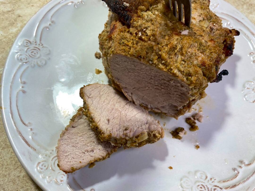 Ингредиенты: Свиной окорок, Мёд, Масло, Чеснок, Лимонный сок, Специи для свинины и соль Способ приготовления: Свинину натереть специями и измельченным чесноком. Связать при делании нитью и смазать смесью из меда, лимона и масла. Положить в рукав и завязать. Выпекать при 180 град. 1,5 часа.