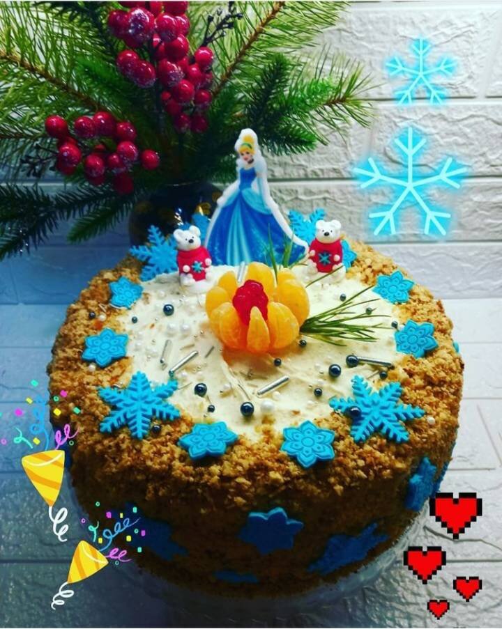 #десерт #новогоднийстол #новыйгод Ингредиенты: Для бисквита: , яйца, соли, сахара, муки, Крем: , молока, сахара, муки, кукурузного крахмала, кокосовой стружки, ванилин , сливочного масла. , Пропитка , молоко сгущенное с водой. , Начинка для торта, миндаль, белый шоколад, кусочки ананаса Способ приготовления: Выпекаем бисквит, режем на 2 части. У меня 2 бисквита, т.е. 4 коржа. Для крема смешиваем в кастрюле все сухие ингредиенты. Хорошо перемешиваем венчиком и в з приёма вливаем молоко. Ставим на плиту и постоянно помешивая доводим до кипения и загустения. Снимаем массу с плиты и даём остыть. Масло сливочное достаём чтобы оно было мягким. Далее масло взбиваем миксером 10 минут. Потом понемногу в масло добавляем кремовую массу и взбиваем, чтобы все хорошо соединилось. Для начинки топим белый шоколад, добавляем в него рубленый миндаль и раскладываем массу на пергамент чтобы она высохла. Это надо сделать заранее. Когда масса высохнет, ломаем на мелкие кусочки. Собираем торт. Корж, пропитка
