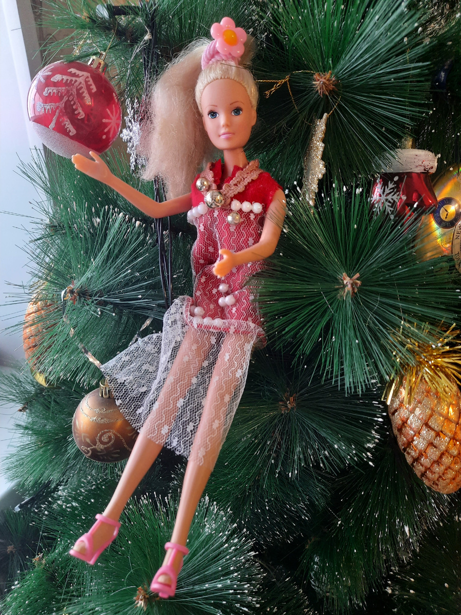 Вчера вечером с дочкой шили для куклы наряды. Главным подручным материалом нам послужили носки которые уже отработали свое и ушли на пенсию)))). Вот мы и решили дать им второй шанс. Настроение с утра было совсем не праздничное, болеем, сидим дома с понедельника, горло, голова, сопли..... решили себя отвлечь рукоделием. Я так увлеклась, что вместо запланированных двух нарядов смастерила три. Профессионально техниками шитья не владею шью как умею))). Дочка подбирала кусочки ткани и носков, выбирала декор))). Младшенький наш разматывал нитки по всей квартире, пробовал на зуб, играл с атласными лентами. Помогал как мог. Самое главное был занят познанием мира и не мешал нам заниматься рукотворчеством. Общими усилиями незаметно но продуктивно прошел вечер. Вот думаю где бы такой большой носок найти из которого можно мне платье на праздник сшить))).