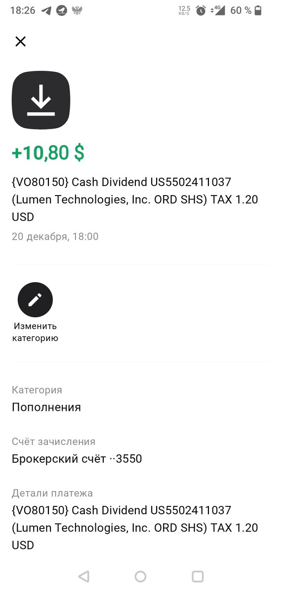 Добрый день, уважаемые подписчики и читатели канала. На одном их моих счетов куплено 48 акций компании Lumen По ним пришли дивиденды: И вот тут меня осенило. Ведь это же здорово, когда можно на полученные дивиденды, без дополнительных вложений, или с минимальными вложениями (1-2 доллара США) приобрести акцию этой или другой компании и тем самым наращивать дивидендную доходность. Понятно, что разные ситуации бывают, сегодня есть деньги, можно не обращать внимание на то, сколько тебе свалилось дивидендами, доллар-два-три-пять, но ситуация может изменится и вот чтобы не останавливаться в процессе инвестирования, надо иметь такой запасной вариант. Продуманно, сделано:) Как читать таблицу? точнее как ее читаю я:) Берем только Брокерский счёт (БС), так как на ИИС перестал вводить деньги. 1. Выбрал компании в которых хочу довести сумму ежеквартальных дивидендов до 10 долларов. В список акций из портфеля на Тинькоффе ( отчёт за 20-24 декабря) попали: Итак: на текущий момент Altria - 10 акций