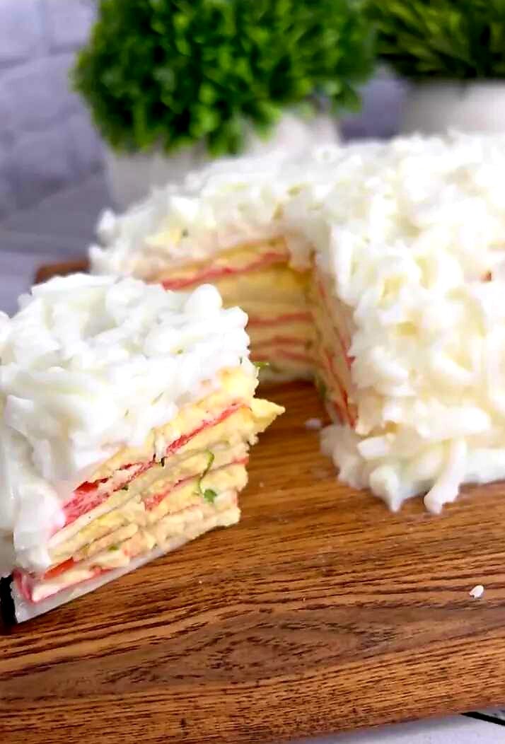 Вкусный крабовый торт без майонеза с секретным ингредиентом для праздничного стола