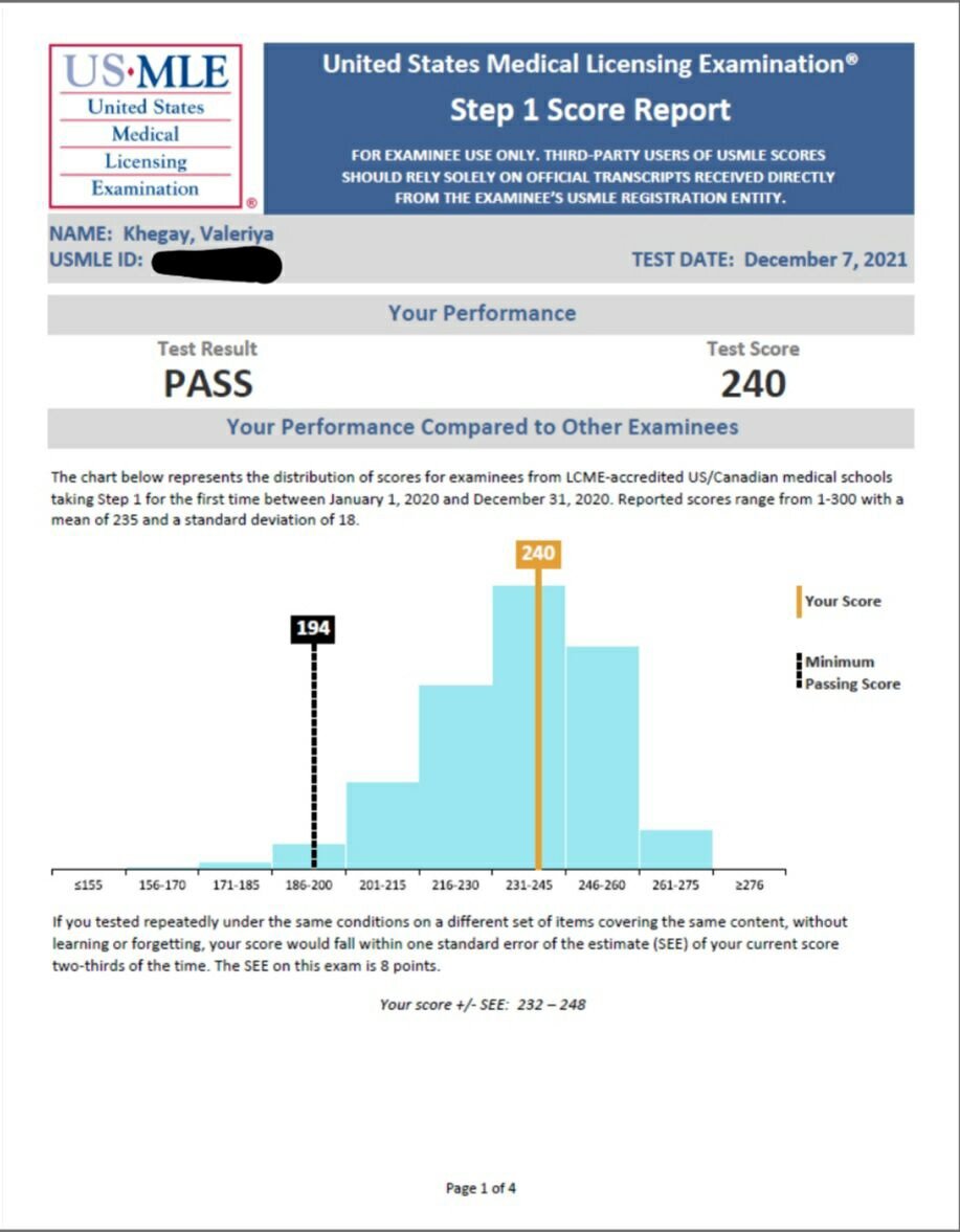 Всем привет) Меня зовут Валерия Хегай. Я сдала Step1 7 декабря в Ереване на 240 баллов. Расскажу немного, как я к этому пришла и как готовилась. Узнала я про степы на втором курсе меда. Тогда мне казалось, что в этом нет ничего сверхсложного, ведь мы изучаем все те же предметы в универе. Решила, что будет достаточно на 5-6 курсе пробежаться по нашим учебникам и можно сдавать. Ну и благополучно отложила мысли об этом. На пятом курсе увидела пост вконтакте про школу Synapse и решила сходить на собрание. Поняла, что подготовка не такая уж и простая и записалась на очный курс. Темп подготовки для меня был немного быстроват, поэтому после окончания курса были пробелы в темах. Но несмотря на это, получила мотивацию сдать usmle во что бы то ни стало. Отдельное спасибо Ивану Агееву, большую часть лекций вел именно он. Занятия всегда были очень насыщенные, интересные, а Иван заряжал своей энергией и мотивировал на подготовку. Даже после курса, во время самостоятельной подготовки всегда с теплот