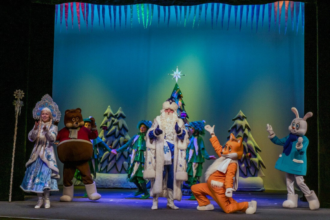 В театре юного зрителя уже несколько дней идет постановка спектакля «Однажды в деревне Дедов Морозов» (с 23 по 30 декабря, 3, 5, 6, 7 и 8 января). Юных зрителей ждет сказочное путешествие по разным странам, их новогодним традициям и обычаям, встреча с удивительными персонажами и новогоднее настроение.