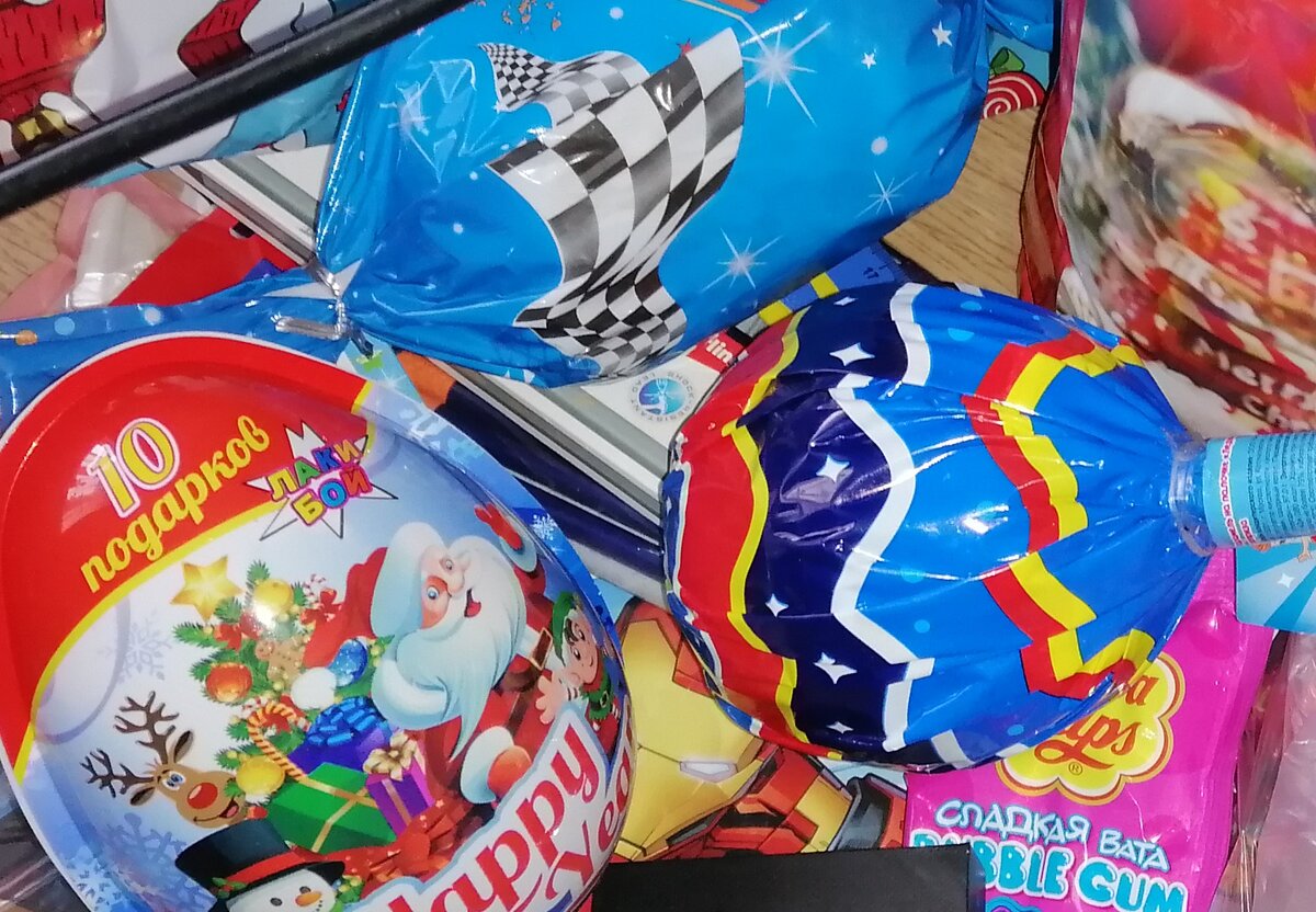 Внутри огромного леденца оказались пазл человека-паука,свинка Пеппа под кислотой и 9 леденцов поменьше,но это неточно,просто при открывании они разлетелись в разные стороны и один возможно затерялся в текстурах. Еще одна гигаконфета Внутри все те же леденцы поменьше, Автомобиль!!! и татуировка, которую сын отказался делать, сославшись на то что год Петуха еще не скоро) В яйце оказались поинтереснее подарки и конфетки) Реактивный самолетик с обратным механизмом, очень быстрый и долго гоняет. И светящаяся подвеска Санта. На фото не видно, но она светиться разными цветами при нажимании на пузико) Всех с наступающим!!!