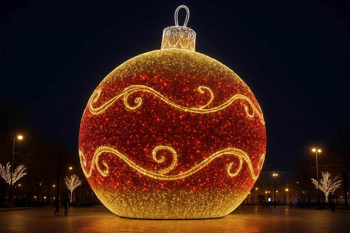 Это огромнейший шар-инсталляция, который не предназначен для украшения елки. Его, как новогодний атрибут, ежегодно выставляют в городе Москва на Поклонной горе (Парк Победы). Самый первый раз, когда шар там установили, оказался 2016 Новый Год. В 2017 изделие попало в книгу Гиннеса, а в записях о его "заслугах" говорится так: "самая большая светодиодная скульптура мира." Интересно, что в высоту шар достигает 20 метров. При этом его диаметральное сечение составляет 17 метров.