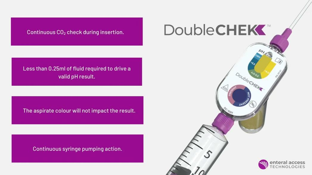 Британская компания Enteral Access Technologies (E.A.T.) получила знак CE для своего устройство DoubleCHEK, что позволяет компании продавать продукт, обеспечивающий безопасность пациентов, во всех странах ЕС. Несмотря на многочисленные сложности, возникшие у компаний из Великобритании, пытающихся экспортировать продукцию в Европу после Brexit, команда E.A.T. ожидает, что высокоэффективный характер их устройства, а также новые дистрибьюторские соглашения помогут ей преодолеть торговые барьеры и добиться роста торговли в секторе. DoubleCHEK - это устройство для энтерального* питания, которое использует индикаторы CO2 и pH в сочетании с запатентованной системой клапанов, чтобы помочь врачам безопасно и быстро установить желудочные трубки в любых условиях. Энтеральное питание используется в тех случаях, когда пациент не может получать питание перорально. Неправильное размещение питательных трубок может привести к серьезному ущербу для пациента, и часто это происходит потому, что врачи прин