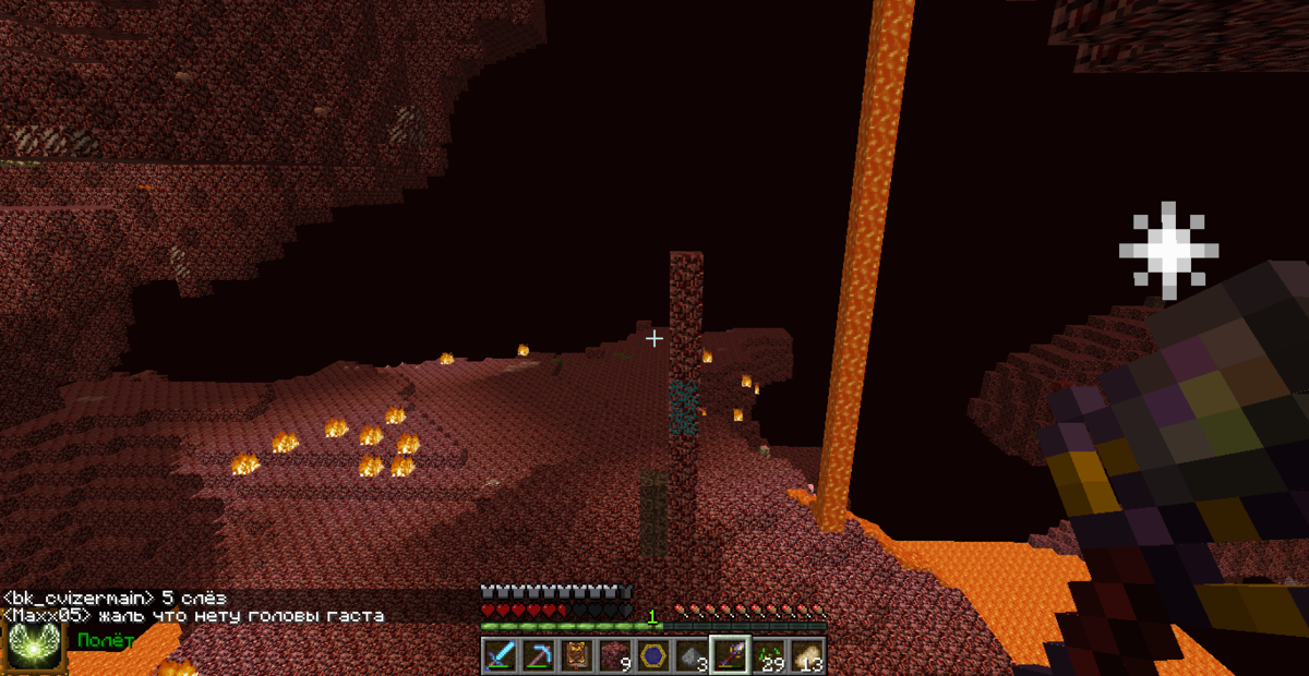 Следом я направился в ад, а Макс в эндер мир. Знаете зачем? Ну, нам нужны были кристаллы ада и края для ихора. Они начали выпадать с мобов тогда, когда мы их открыли. Поэтому я адские собираю, а он крайские. Но закончил он быстрее из-за большего количества мобов, а я вот не мог найти даже свинозомби....