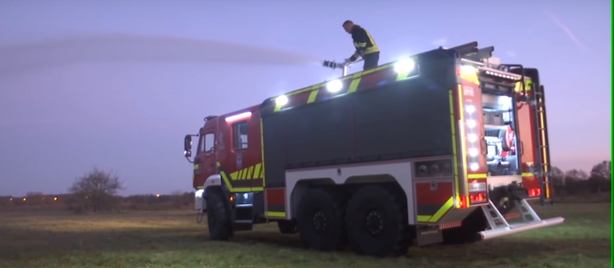 У этой машины 320 лошадиных сил и двигатель также приводит движение водяную помпу которой нужно всего три минуты чтобы подать 6000 литров воды для тушения пожара. Цена машины российского производства, который был специально сконструирован для тушения пожаров , 270 тысяч евро. В соотношение качества и цены , российский КАМАЗ выигрывает у немецких фирм, которые изготавливают пожарной машины. У них цена очень высока а если денег маловато, то надо мыслить как воплотить наши желания в реальность и ради этого они экономили три года. Полный привод, кабина на 6 персон, и большой бар этой машины, заинтересовались и других пожарных Германии. С тех пор как у нас появилась эта машина, мы реально получаем очень много запросов чтобы показать им нашу машину, ведь это реальная альтернатива для пожарных Германии, тем более, что эта машина стоит более чем на 100 тысяч евро меньше чем немецкие пожарной машины и к тому же эта техника хороша - очень солидное и качество и простое управление. Это н