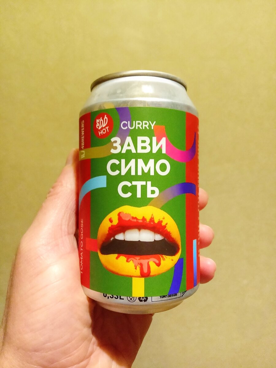 Сегодня попробуем четвертое пиво из линейки томаток владимирской пивоварни 4Brewers. На сей раз это будет "Зависимость [CURRY]". Ничего интересного пивовары о своем пиве не рассказывают, так что сразу начнем дегустацию. В составе пива присутствуют следующие нерайнхайтсгеботненькие ингредиенты: Прям какой-то Том Ям с консервантом. ТТХ: Пиво выглядит как томатный сок. Пена появляется только на несколько секунд после налива. В аромате, в основном, копчености. Сквозь них слегка ощущаются томаты, перец чили и азиатские специи. Вкус томатный, солоноватый, с лаймовой кислинкой, нотками чеснока и кориандра. В конце появляется заметная острота, весьма усиливающаяся в длительном послевкусии. По этой причине пьется не особо быстро. Весьма вкусная и острая томатка. Хотя, конечно, до рекордов остроты ей далеко. Брал по 189 рублей за 0.33 л.