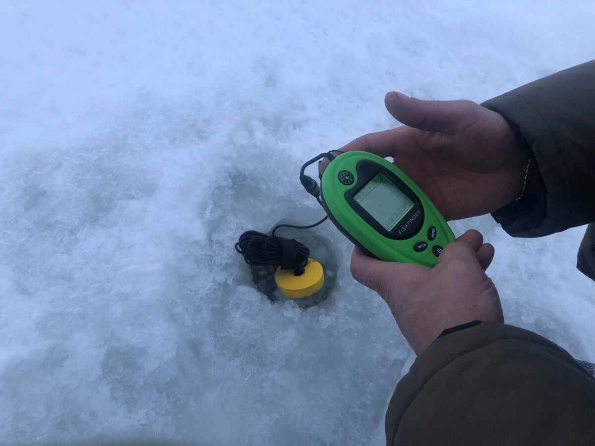 На место прибыли в 9.30. По прошлым выездам известно, что в данном месте плотва не особо торопится с клёвом: пробовали приезжать и в 6 утра, и в 8 - итог один: до 9.00 ни поклёвки! Ну, или слабые шевеленки. Вот такая особенность местности). Первые поклёвки появляются в девять часов. Не буду вдаваться в промер глубин и выбор точки лова, скажу лишь, что эхолот благополучно откинул копыта, и промерять пришлось дедовским методом: