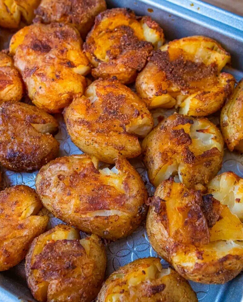 Рецепт, который удивил и в который просто влюбилась: так еще картошку я не запекала - невероятно красиво, колоритно, живописно, аппетитно, аутентично (для красного словца). Всем, кто ценит простые и вкусные блюда, уважает все варианты картофеля по-деревенски - идея на заметку. Готовится...проще запеченного картофеля. И - важный момент: у этого картофеля нет шансов стать сухим, пригоревшим, жестким - он не умеет перепекаться. Потому что запекать будем с простой (и единственной) хитростью. Делюсь простым рецептом: на гарнир к ужину, для праздничного стола даже - хорош картофель, приготовить стоит. "Мятый" запеченный в духовке картофель: рецепт + ингредиенты 1) Картошку не чистить. Помыть - и проварить 5 минут. Именно так - варим. В мундире :) Не долго - до мягкости, но не до готовности. До полуготовности. Или картофель аль-денте :) Зачем это? А я недавно открыла этот метод, и запекала и ломтиками (обычным методом), с луком - не подводит. Правда, просто бланшировала пару минут. Идеально п
