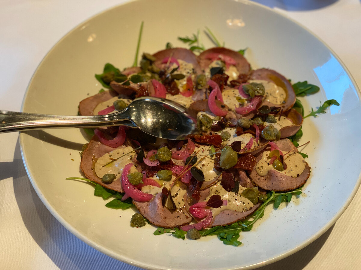 На днях сходили семьёй в «Dr. Живаго», едва ли не лучший ресторан Александра Раппопорта. О том, чем это место хорошо, я ещё напишу. Сегодня же хочу рассказать об одном примечательном блюде из его меню: салат с говядиной с соусом из шпротов. Полюбуйтесь. Это такая постпостсоветская — и очень новогодняя, шпроты же, — вариация на известную итальянскую закуску вителло тоннато, то есть телятину с тунцовым соусом. Там тунец, тут шпроты — вроде бы логичная замена, но всё равно у меня насчёт этого блюда было некоторое предубеждение: а не шняга ли получается? Поэтому, конечно же, я его и заказал. Оказалось — прекрасный соус. С ощутимой копчёной нотой, с лёгкой кислинкой, — к говядине подходит просто превосходно. Да и вообще к мясу и субпродуктам: представил такой же соус с тонко нарезанным языком — праздничная красота. Поэтому я взял и написал шефу «Живаго» Алёне Солодовиченко, чтобы она мне рассказала, как этот соус готовится: чтобы вы взяли его на праздничное новогоднее вооружение. Всеми сек