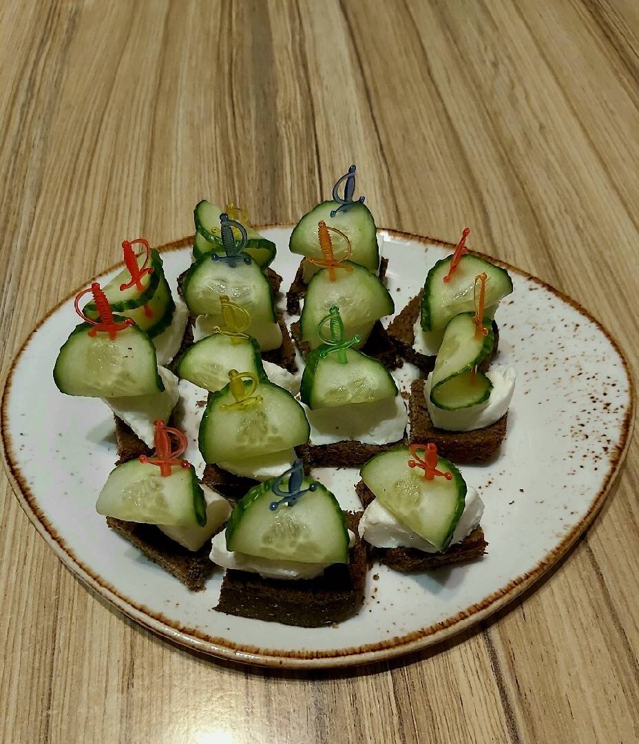 #новыйгод Всем доброго времени суток!🤗 Вашему вниманию - рецепт вкусных канапе всего из 3 ингредиентов! Ингредиенты: бородинского хлеба, моцареллы, небольшой огурец Способ приготовления: Хлеб порезать на небольшие прямоугольники. Шарик моцареллы аккуратно острым тонким ножом порезать на небольшие кусочки. Огурец порезать на диагональные слайсы. Нанизать волной на шпажку огурец, затем сыр и воткнуть в хлеб. Приятного аппетита!🤤 Если есть вопросы по приготовлению - я на связи: пишите мне, всегда рада помочь!😉