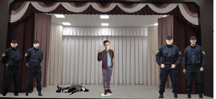 -Вот где-то так мы обращаемся с теми, кто нам мешает жить, - он скинул тело со сцены.
