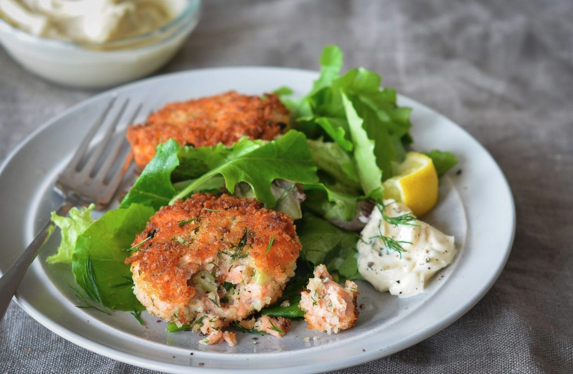 Я думала, что сегодня уже не буду вас отвлекать от Оливье и селёдок под шубой, но поступил экстренный SOS, с вопросом, как можно спасти перемороженного лосося или другую красную рыбу, которую готовили для запекания на новогодний ужин. Искренне сочувствую и понимаю, что это одна из тех неприятных ситуаций, которые полностью лежат на совести продавцов, но нам-то от этого не легче.... Тем не менее, у нас есть выход. Мы сделаем рыбные пирожные, которые котлетами язык не повернётся назвать. Приготовленные из лосося (кеты, горбуши, форели или что там за бешеные деньги у нас переморозилось) и укропа, эти пирожные так же вкусны и даже элегантны, как и знаменитые крабовые пирожные, но гораздо доступнее в цене и в технологии. Порции: 10 шт. примерно за какие-то 30 минут. 1/4 стакана майонеза 1 столовая ложка свежего лимонного сока из 1 лимона 1 чайная ложка дижонской горчицы 1 чайная ложка перемолотого в пыль лаврового листа 3/4 чайной ложки соли 1/4 чайной ложки свежемолотого черного перца 70