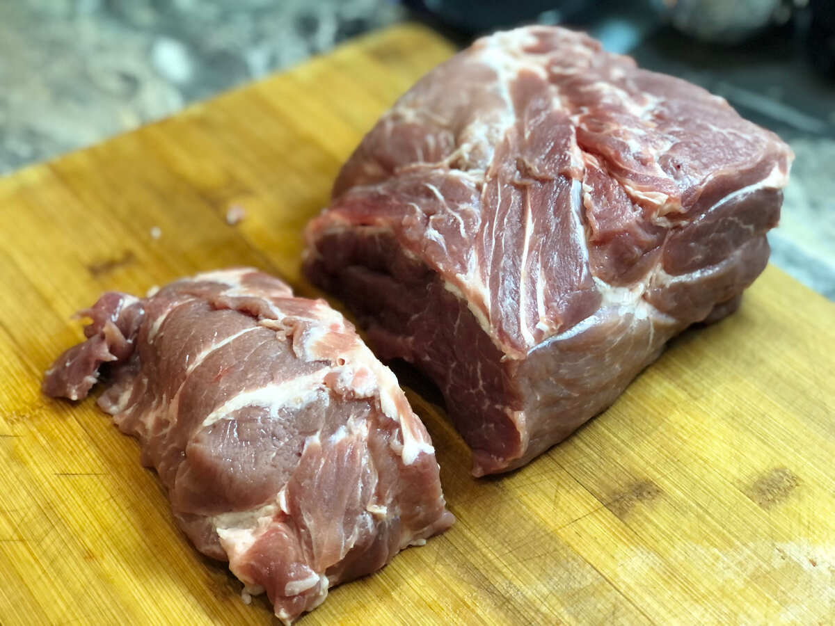 У меня свинячья шейка. И вот тут есть первый момент, который хотел бы отметить: многие делают данное блюдо из окорока. Отличное мясо! Но, на мой взгляд оно сюда не подходит. Суховато получается. Потому- шейка: