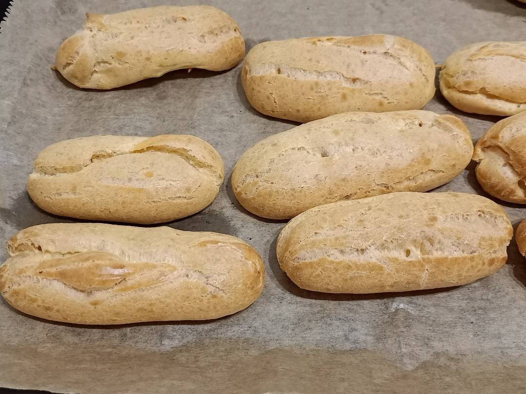 #канікули Ингредиенты: пшеничного борошна, масла, води, солі, яєць (5 яєць середнього розміру), Крем, масла, цукру, молока, куряче яйце, ванільного цукру, коньяку, Глазур (посадка), шоколаду, масла Способ приготовления: Готуємо заварне тісто. У каструлю налити воду, додати вершкове масло, сіль, довести до кипіння. Всипати одразу все борошно, почати перемішувати. Після того, як тісто збереться у грудку, продовжувати заварювати ще хвилину, борошно повинне добре заваритися. Зняти з вогню та охолодити до теплого стану. Поступово, по одному вливаємо яйця в тісто, щоразу добре збиваючи міксером, або вимішуючи великою міцною ложкою. Тісто повинне вийти однорідне. Кладемо тісто у щільний пакет, зав'язуємо, обрізаємо кут розміром приблизно 1,5-2 см. На пекарському папері зробити розмітки (довжина еклера 12 см), папір із відмітками перевертаємо на інший бік. Тісто розраховане на 20 штук. Видавити тісто на лист у вигляді смужки. Поставити у розігріту до 180 градусів духовку. Випікати приблизно 25