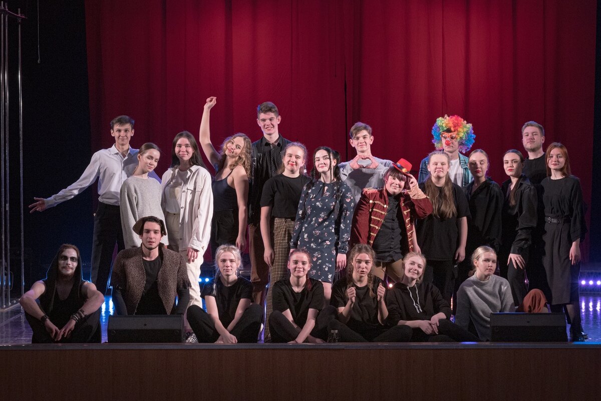 Так вот, спойлер: цирк уродов, в котором и артистов-то почти нет, и номеров на хорошую программу не набрать, зато рулит этим мистическим цирком обаятельнейшая тиранша Алекса. Этакий Карабас-Барабас в женской версии. В это странное место непостижимым образом, позволяющим с одинаковой вероятностью думать и о простом кошмаре, и о смерти, и том свете, и даже о злой фантазии какого-то обдолбавшегося драматурга, который это все пишет на тесной кухне хрущевки, попадает герой в светлых одеждах, и ничего не понимает. Циркачи пыжаться показать что-то, чего ни один циркач никогда показывать не станет, разве что на капустнике, и жалуются на вечное рабство. Причем жалуются, как принято, скорее в мыльных операх – дескать, я бы сказал, да ты не поймешь, или нам нужно поговорить об этом но не сейчас, не с тобой и не здесь. В результате нужные слова, ценность которых равняется банальной формуле 2Х2=4 если и прозвучат, то никак не раньше сто сорок восьмой серии. Затем на сцене организуется несанкционированный митинг, Алексу не то свергают, не то нет, и все три с половиной человека натужно изображают традиционную финальную радость. А если вам мои слова про три с половиной человека кажутся большой натяжкой, то гляньте на финальное фото весны. Нынче все факультеты фоткаются после показа всем составом. Ну и физики тоже сфоткались. Все, сколько их было. Включая танцевальную, вокальную и вокально-инструментальную группы.