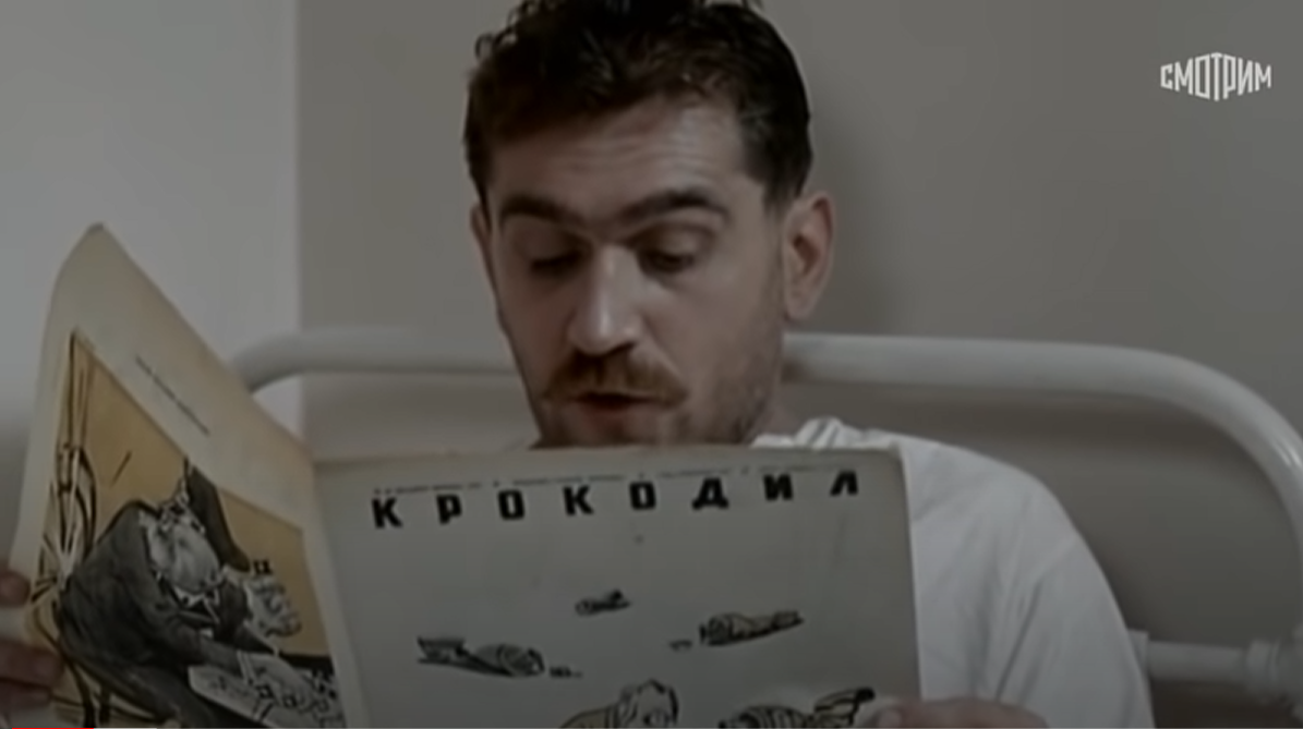 Пятая серия сериала начинается в госпитале, где лежит самострельщик рядовой Цукерман. Солдаты лежат в палате, отдыхают, один из раненых читает листок журнала "Крокодил". Обратите внимание на то, что в журнале отсутствуют все страницы. кроме обложки.