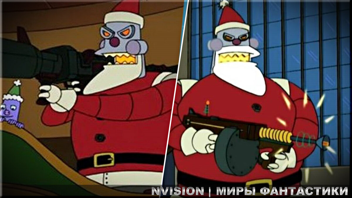 Всем привет, дорогие подписчики и случайные посетители канала. Сегодня у меня короткая статья о роботе Санта-Клаусе из замечательной сатирической научно-фантастической франшизы "Футурама". Хотя, пожалуй, цель сегодняшней статьи - поздравить всех Вас с Новым Годом и пожелать всего наилучшего в наступающем 2022 году. С Рождеством и Новым Годом! Ну и по старой традиции, для придания статье необходимого настроения, я подобрал для Вас соответствующий звуковой ряд. Итак. Робо Санта в "Футураме" является одним из антагонистов франшизы. Кстати, интересный факт. "Футурама" (на англ. Futurama) это игра слов FUTURe (будущее) и panoRAMA (панорама), что подразумевает под собой слова "Панорама Будущего". Робо Санта был разработан MomCorp (Корпорация Мамочки), а точнее, подразделением корпорации Mom's Friendly Robot Company (Мамина дружелюбная робототехническая компания) в 2081 году и является улучшеной моделью линейки роботов разработки Хьюберта Фансворта. В 2928 профессор Хьюберт Фарнсворт разраб