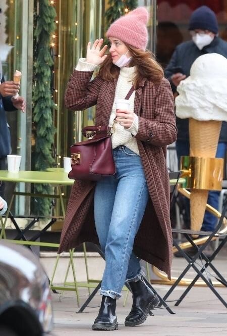 Свитер, шапка и утепленное пальто стали долгоиграющими спутниками гардероба в холодные зимние дни, которые не обходят вниманием и завсегдатаи красных ковровых дорожек, в том числе звезда «Короны» Клэр Фой. Знаменитость примеряет сочетание с обычными джинсами, кремовым свитером и грубыми черными ботинками, которое удачно дополняют вместительная бордовая сумка наперевес и шерстяная шапка в нежно-розовом оттенке. Текст: MarieClaire.ru #клэр фой #звездный стиль #повседневный стиль #стильный образ