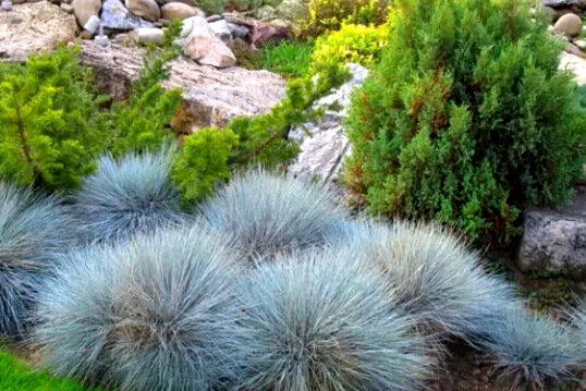 Одним из самых популярных видов овсяницы является сизая. Произрастает невысокими кустами от 20 до 35 см в высоту. Вечнозеленые узкие игловидные листочки очень густые и плотные, могут быть разных оттенков, палитра от сизого до ярко-голубого цвета, в зависимости от времени года. Цветет в начале лета, соцветия сине-зеленого цвета. После увядания образуется огромное количество очень мелких семян. Растение солнцелюбивое и не переносит застоя влаги. Может подойти и полутень. Долго произрастая на одном месте оно может потерять свою пышность, цвет или даже пожелтеть, и засохнуть. С этой целью садоводы всегда держат в запасе посадочный материал. Чтобы не нарушать гармонию композиции погибшее растение заменяют. Время жизни злака в среднем 3 года. Это время растение не боится перепада температур и не нуждается в укрытие. Ранней весной растение приводят в надлежащий вид: очищают отставшие листья. Для этого используют специальные грабли с редкими зубьями. Метелки срезают после цветения, чтобы раст