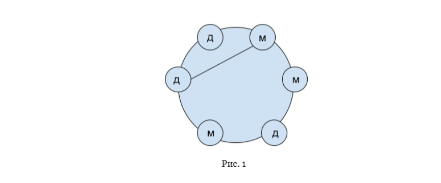 Примечание: При том считаем по короткой дуге пару хорошей, если при равенстве дуг хотя бы на одной количество мальчиков и девочек совпадает.