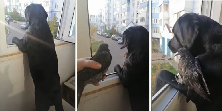 Лабрадор чудесным образом реагирует на раненую птицу, залетевшую на лоджию