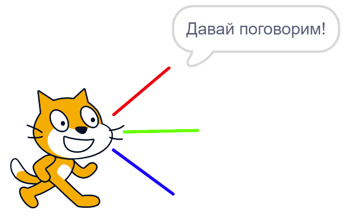 В данном варианте указанный спрайт спрашивает Вас, что нужно сказать, и повторяет Ваш ответ.