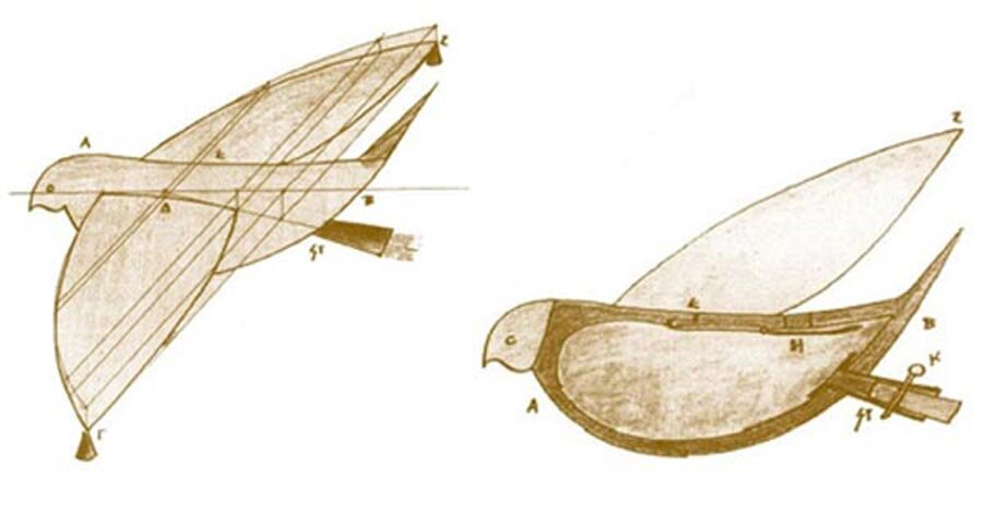 Летающего голубя с паровым двигателем, изобретенного Архитасом в период между 400 и 350 годами до нашей эры, иногда называют первым в мире роботом. Это также первый зафиксированный случай исследования того, как летают птицы. Музей древнегреческих технологий Коцанаса создал реконструкцию того, как должен был выглядеть летающий голубь.