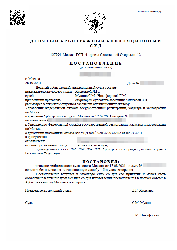 Всем привет! Ранее я писал о том (вот ссылка), что нам удалось выиграть суд первой инстанции у Росреестра. Росреестр подал апелляционную жалобу, и мы были вынуждены очередной раз заниматься бумагомарательством. Отчитаться-дело чести Апелляционная жалоба была подана Росреестром в излюбленной им пофигистичной манере: - С решением не согласны! -Почему? -Потому! Была приведена точно такая же информация, что и в вынесенном отказе в кадастровом учете: без пояснений, что конкретно нарушено, т.е. просто ссылки на объемные пункты законов и указание на то, что они нарушены. Что ж, каждый делает свою работу. Вот, например, юристы Росреестра, которые получают деньги от налогоплательщиков, занимаются тем, чтобы отчитаться перед начальством, что: ну вот, мы идем оспаривать – работа ведется, все решаем. Собственно, никого не осуждаю, просто констатирую факт. Следует отметить, что дальше бумагомарательства у Росреестра дело не пошло – на заседание они решили не являться. Замах на рубль, а удар с копей