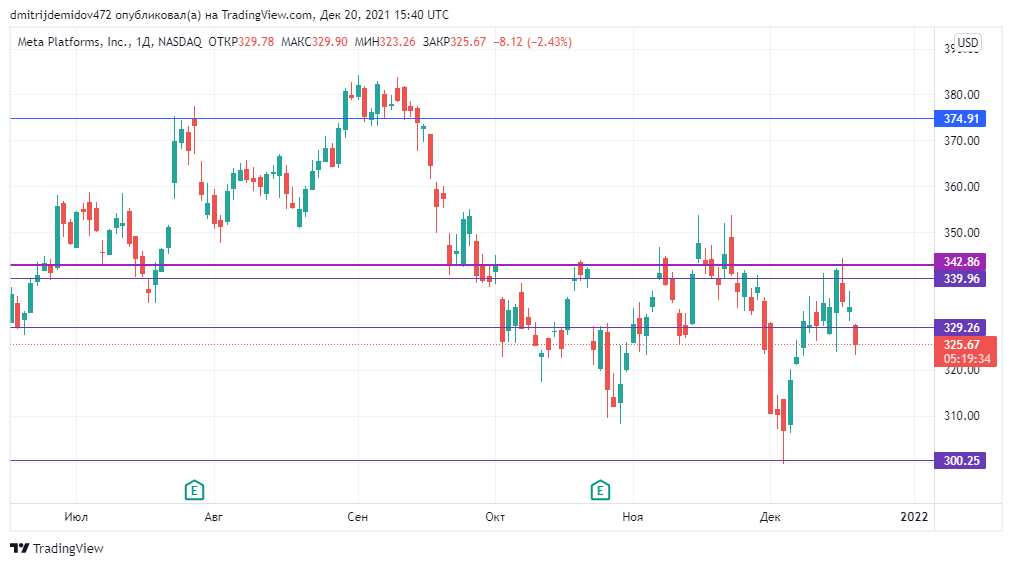 Приветствую. Американский фондовый рынок открылся в негативной динамике. С рождественским ралли немного не задалось и S&P 500 падает в момент написания на -1.60%. Многие акции идут следом за индексом. Вот, что происходит с голубыми фишками США. Акции Meta: Да, я просматриваю многие компании, которые были и до этого в обзорах, но ситуация быстро меняется и даже немного неожиданным для большинства способом. Что у нас вновь изменилось с Meta? По Мета вновь идет схождение и мы можем вновь пойти ниже. Медведи давят на акцию без каких-либо серьезных фундаментальных причин. Если инвесторам все равно – они закупят еще, то спекулянтов может выносить по стопам, так как это прослеживалось с российским рынком. Что я могу порекомендовать – воздержаться от спекуляций пока что и дождаться более ясной картины того, что сейчас происходит с рынками. Кто сидит в долгую – вам не стоит волноваться. Если упадет ниже – докупайте. Акции Apple: Эпл по часовому графику я бы ждал реакции у следующих уровней. З