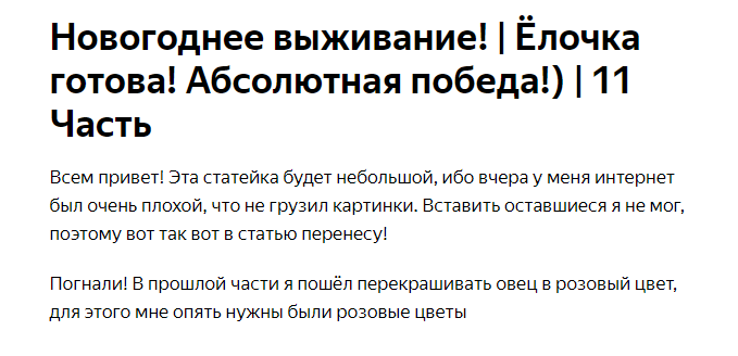 Всем привет! Эта часть будет последней в этом году, хех, да и в целом это выживание подходит к концу. Да, еще будет несколько частей... Но мы сейчас делаем новое, так что можно сказать новогоднему выживанию подошёл логический конец. Сегодня я так уж и быть доделаю ёлочку, сделав её более красившей)