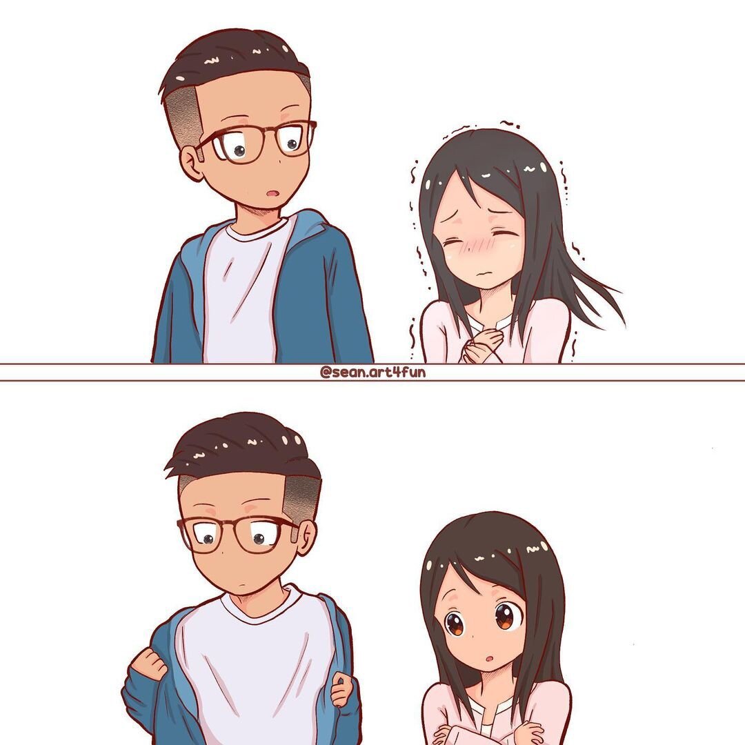 Как я поняла, эти комиксы рисует парень о своей веселой жизни с любимой девушкой. Я не увидела свадебных комиксов или колец на их пальцах, так что наверное это все же влюбленная пара, которая живет вместе.