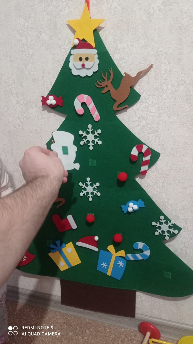 Ёлочка с игрушками на липучках, для маленьких детишек!!! Нашей доче очень нравится.