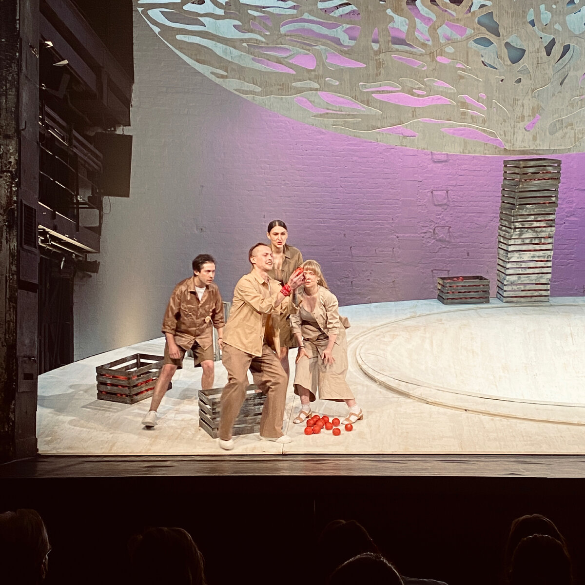 Поколение z (рожденные после 1995 г) часто называют потерянным. Они не знали трудных 90х и родились на всем готовом, инфантильны и живут в соцсетях. В Театре на Таганке о зумерах поставили сатирическую комедию. Спектакль «Урожай» Марфы Горвиц рассказывает об их неприспособленности ко взрослой жизни, нежелании оторваться от соцсетей, неумении довести начатое до конца. Четверо ребят идут собирать урожай яблок, что становится испытанием для каждого. Валера (Роман Колотухин), Егор (Сергей Цымбаленко), Ира (Надежда Флерова) и Люба (Инна Сухорецкая), кажется, впервые столкнулись с физическим трудом. Для них это по приколу. Они не привыкли выезжать из города, о чем говорят без тени стыда, неспособны даже отличить дятла от кукушки. Некоторые сцены актеры играли слишком утрированно. В итоге дело приняло катастрофический оборот. Яблоки рассыпаны, ящики разбиты, ветки сломаны, и ребята, обматерив всё, решают сложить урожай в ящик без дна (!) и смотаться. Горе-компания эффектно удаляется под пе