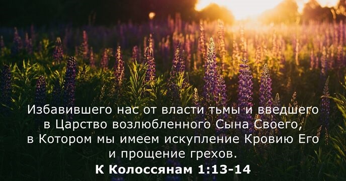 «В Котором мы имеем искупление [кровью Его] и прощение грехов» (Кол. 1:14). Павел продолжает своё образное описание избавления, начатое в стихе 13. Колоссяне, как и Павел, были искуплены и освобождены из духовного плена. Результат искупления — прощение грехов, которое имеют пребывающие во Христе Иисусе, единственном источнике искупления. Муль верно отметил следующее: «Прежде чем оставить ст. 13, обратите внимание на фразу “в Котором”, но не “через или посредством Которого”. Таким образом здесь высказывается мысль о союзе с Христом… Прощение, полученное благодаря смерти Искупителя, предназначается для тех, кто верой включается в таинственную Личность Искупителя». Колоссяне вошли в Христа, когда крестились, как это происходит со всеми христианами. Пребывать в Иисусе важно, так как в Нём — всякое духовное благословение (Еф. 1:3). «Искупление» (аполитросис) не означает отпущение раба или пленника на волю путём уплаты за него выкупа, освобождающего его. Скорее, это слово указывает на резуль