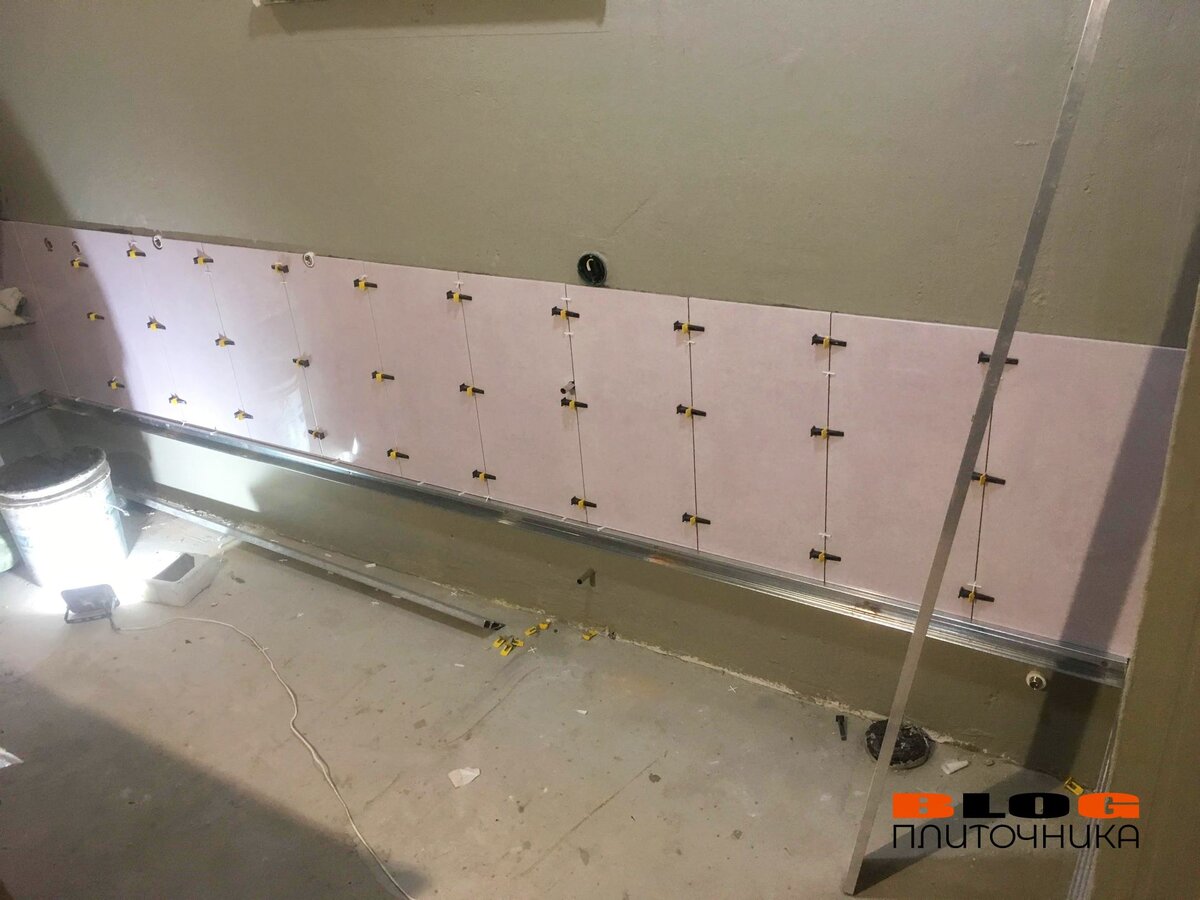 Я: Плитка отошла чистой, вместе с раствором или часть клея осталось на стене? И какой был размер гребёнки? 6Использовали систему выравнивания плитки?