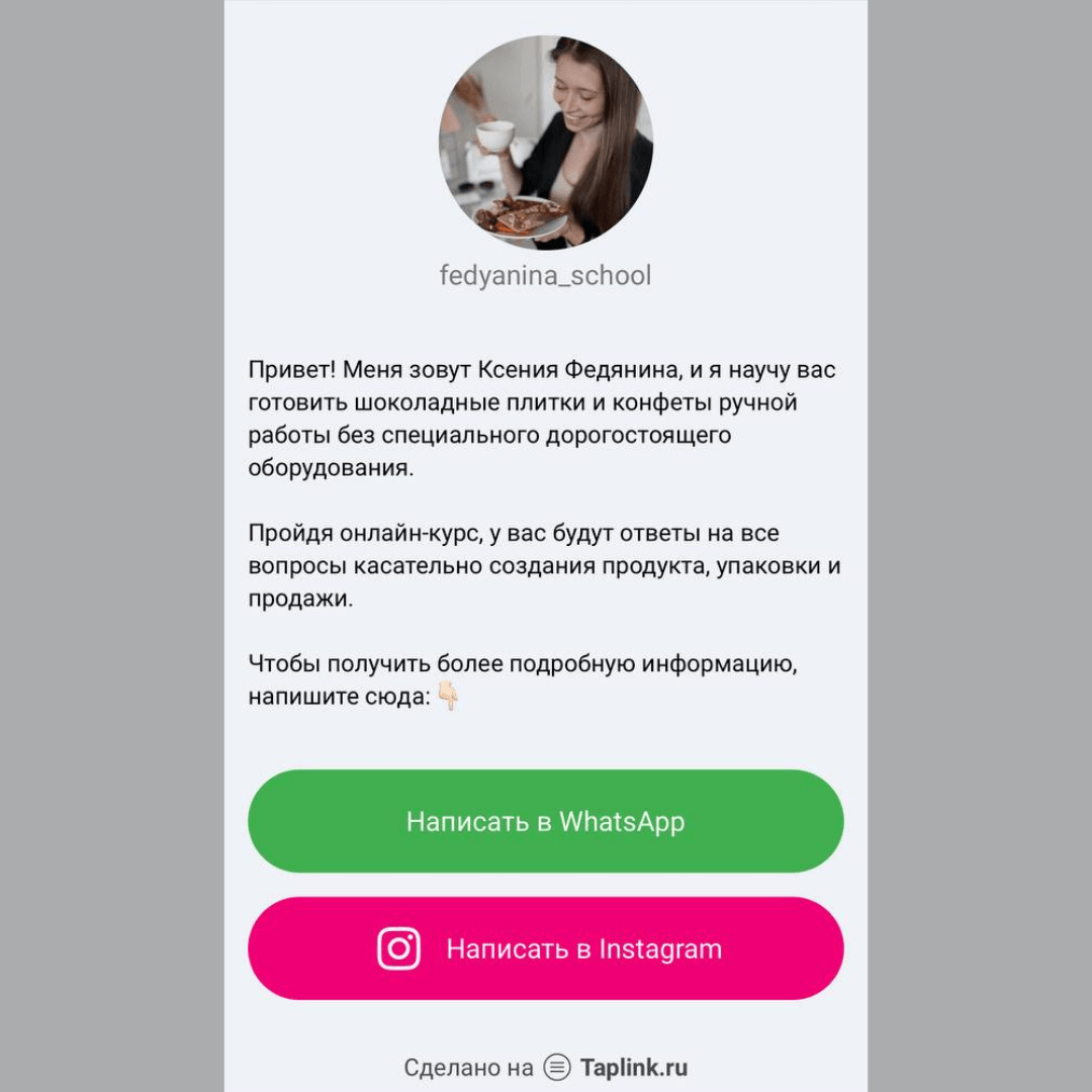 Период работы январь-март 2021 Посадочная страница Трафик вели на taplink - он простой и легко оформлен. Его цель, чтобы все вопросы, которые возникают у клиентов, задавались менеджерам. Отметим, что у компании отлажена работа отдела продаж, и это значительно повлияло на успех работы. Креативы тестировали 3 “оффера”: