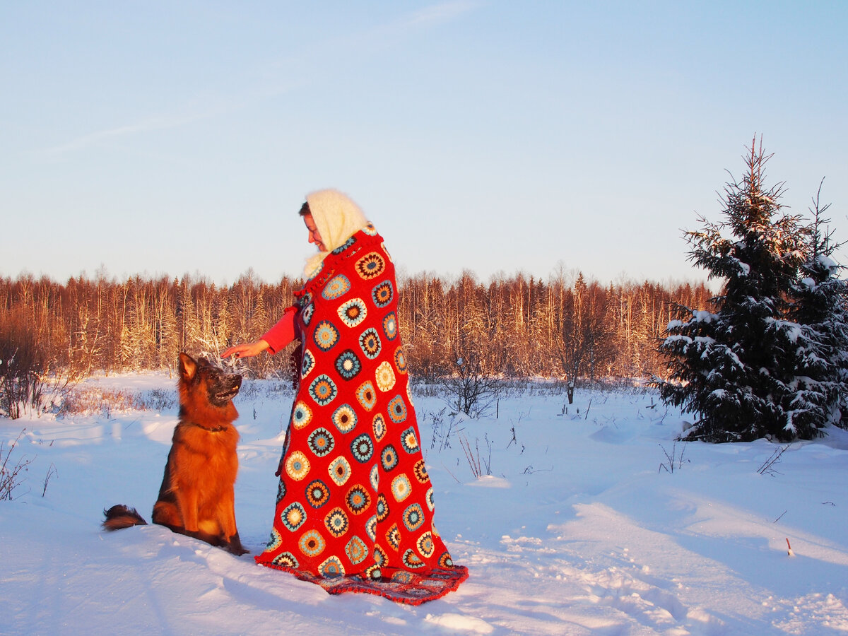 От автора: Удивилась я, Елена, как ярок на снегу ваш плед-то!!! Ну и собакена разглядела))) я ж теперь эта... ихна повелительница.... Вот странно как - до появления Мани я знала всё кошачье население нашего проекта, а собачье словно не замечала)) теперь всё наоборот! Гляжу на вашу модель и думаю - мою модель эдак закутай и ищи свищи плед по закоулкам)).