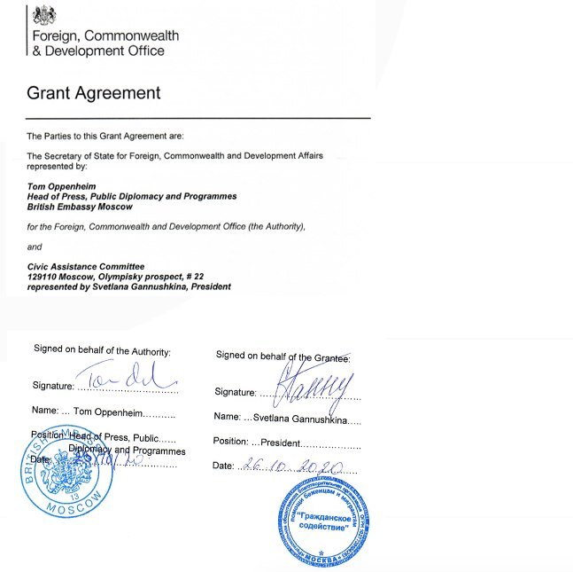 В пункте № 5 (Сумма гранта) отмечено, что FCDO предоставит двадцать одну тысячу двести тридцать фунтов стерлингов (2 млн рублей) на покрытие общих расходов по Проекту, которые будут выплачены в финансовом году начала Проекта FY2020/21.