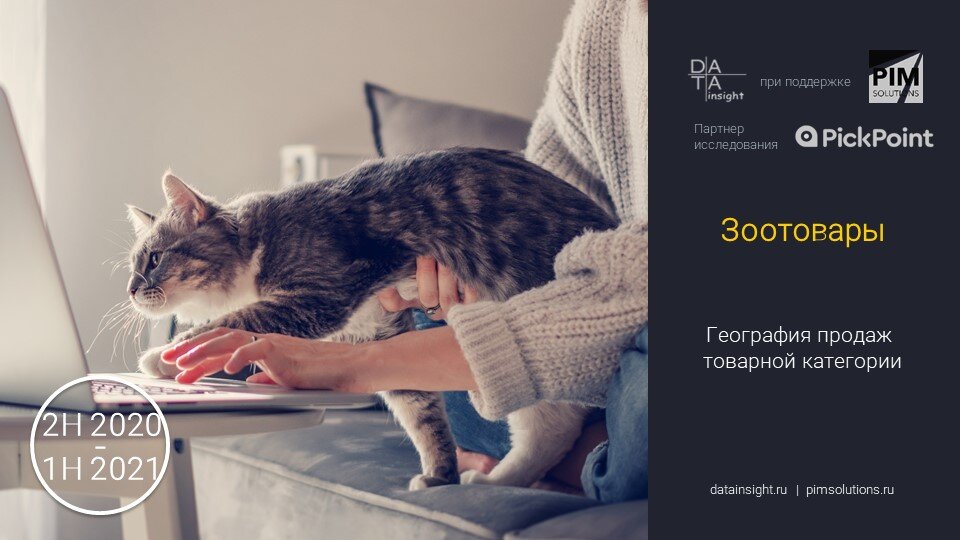 Data Insight и PickPoint при поддержке Pim Solutions выпускают отчет «География продаж зоотоваров» об особенностях онлайн-заказов и интернет-доставки зоотоваров на территории Российской Федерации. Данные охватывают вторую половину 2020 - первую половину 2021 года. Исследование включает данные по долям продаж и заказов, среднему времени и расстоянию доставки, типу оплаты (предоплата или постоплата), виду доставки («до двери» или пункта выдачи заказов). Краткие результаты исследования: • Москва и Санкт-Петербург являются лидерами абсолютного потребления товаров категории «Зоотовары». На них приходится около 27% заказов по всей России. • Лидерами в индексе относительного онлайн-потребления зоотоваров являются Краснодар, Санкт-Петербург и Самара. • Большее количество продаж категории «Зоотовары» в исследуемых городах, как правило, наблюдается в период с октября по декабрь 2020 года. Исключениями являются Нижний Новгород и Самара, где пики продаж приходятся на апрель и июль-август 2021 соот