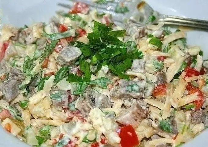 Ингредиенты: Приготовление: говядину, картофель, соль, перец, майонез, огурцы, сыр, майонез, помидоры, соль, перец, майонез, немного сыра и рубленная петрушка! Можно, собственно, в любом порядке! Или даже сразу смешать, если есть салат собираетесь сразу! Я предпочитаю его оставить слоями,-так лучше хранится! Приятного аппетита! Если вам понравился рецепт, переходите на канал ArtNatalia Все о еде и рецепты.