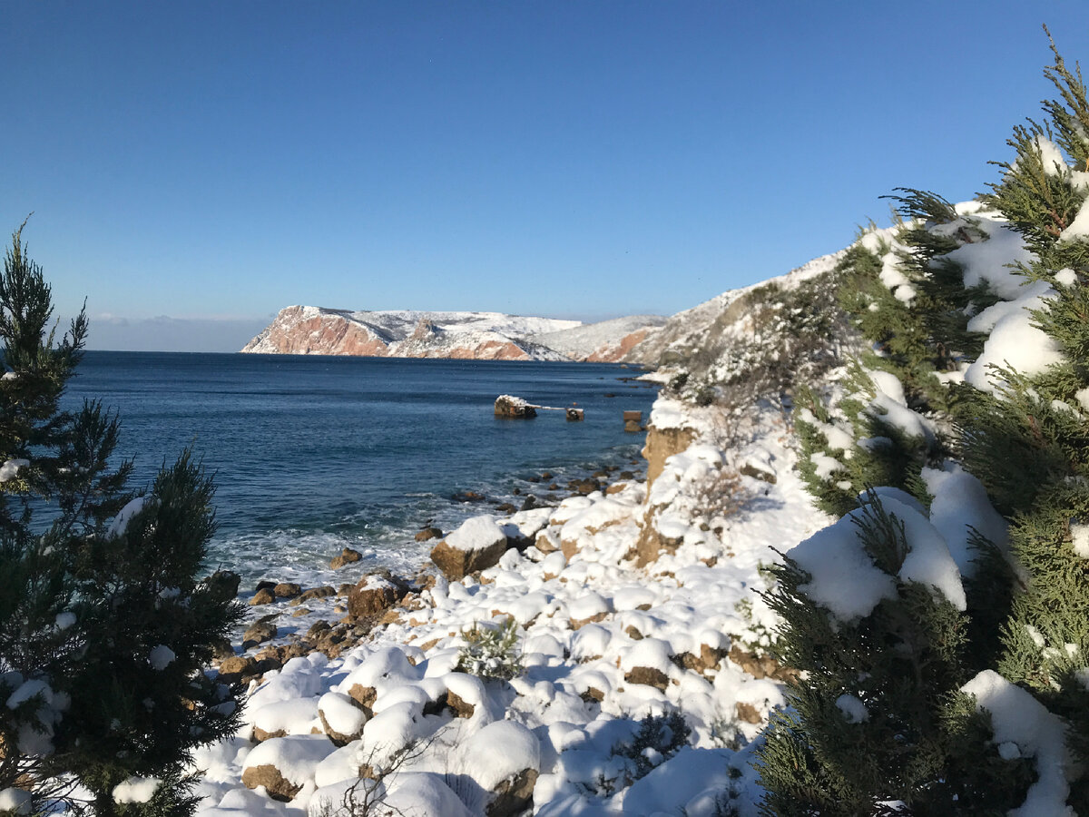 В снег и мороз иду из Инжира к мысу Айя. Дневник зимующего в палатке у моря в Крыму 23.12.21. Часть 1.