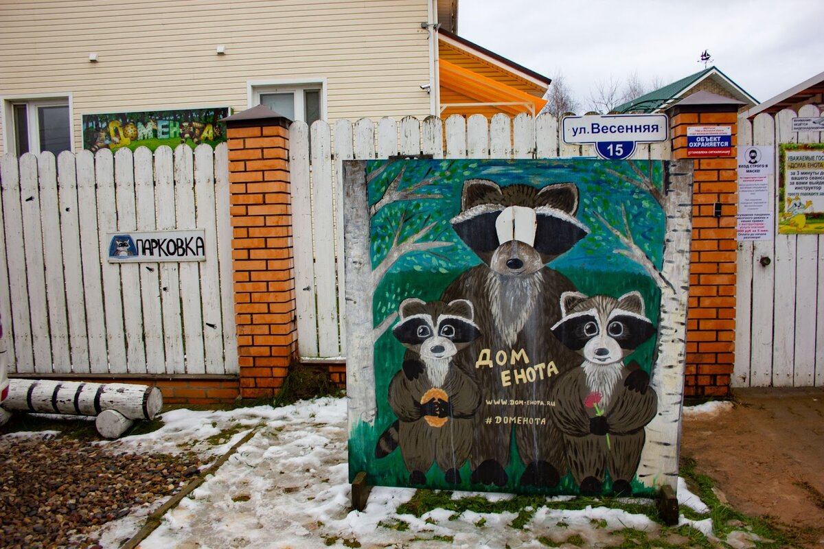 https://magput.ru/?viewprog=33819 Примерно вот такой инструктаж мы получили на входе в Дом Енота. Последний пункт - с воротником - подозреваю, что не нравится больше хозяевам, чем самим енотам. Впрочем, проверять не возникло желания. Да и в самом деле - пообщавшись с этими милейшими, хоть и своенравными созданиями, в голове не укладывается, как можно их рассматривать в подобном качестве! Заходим. Подходим к первому вольеру, где нас встречают два брата-енота! Всем своим видом они показывают, что нам рады! Хотя, может быть, они рады угощениям? Но сотрудники нас уверяют, что еноты очень социализированные животные и любят общение и “движуху”. Вскоре мы в этом убедились на личном опыте! Уровень ми-ми-мишности запредельный! А больше всего произвели впечатление… енотьи лапки, которыми енотики берут корм из рук. Ловкие и подвижные, почти как человеческие! Далее, минуем собак, голубей (да, еноты здесь не единственные обитатели) и направляемся к вольеру, где пообщаемся с енотами поближе. Без не