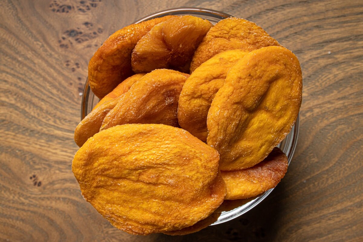 Сушеные персики — ценный источник полезных веществ природного происхождения. По содержанию калия они не только чемпионы среди сушеных фруктов, но и занимают второе место списка всех продуктов, уступая только белым грибам. В 100 г сушеных персиков 2,043 г калия.